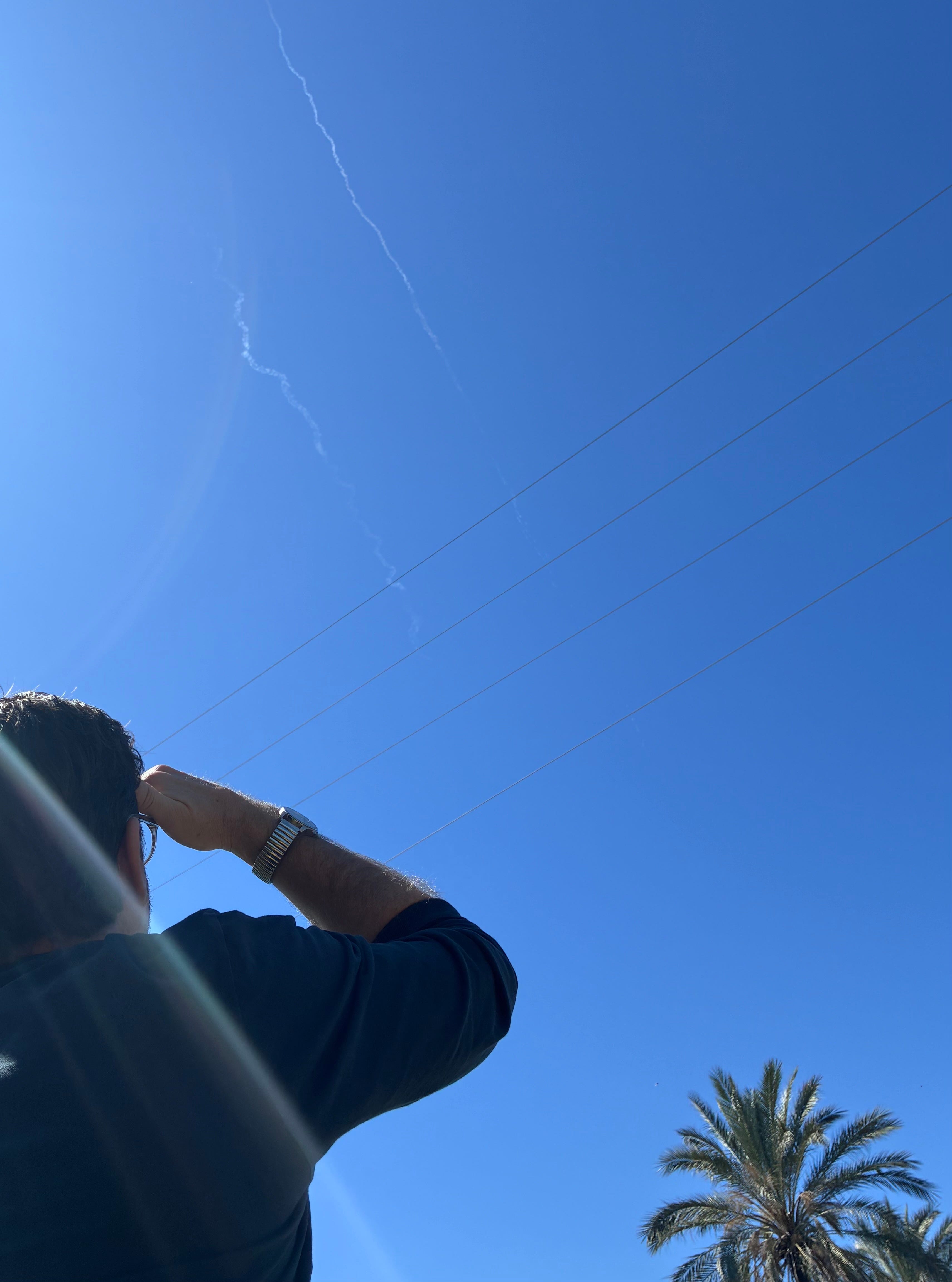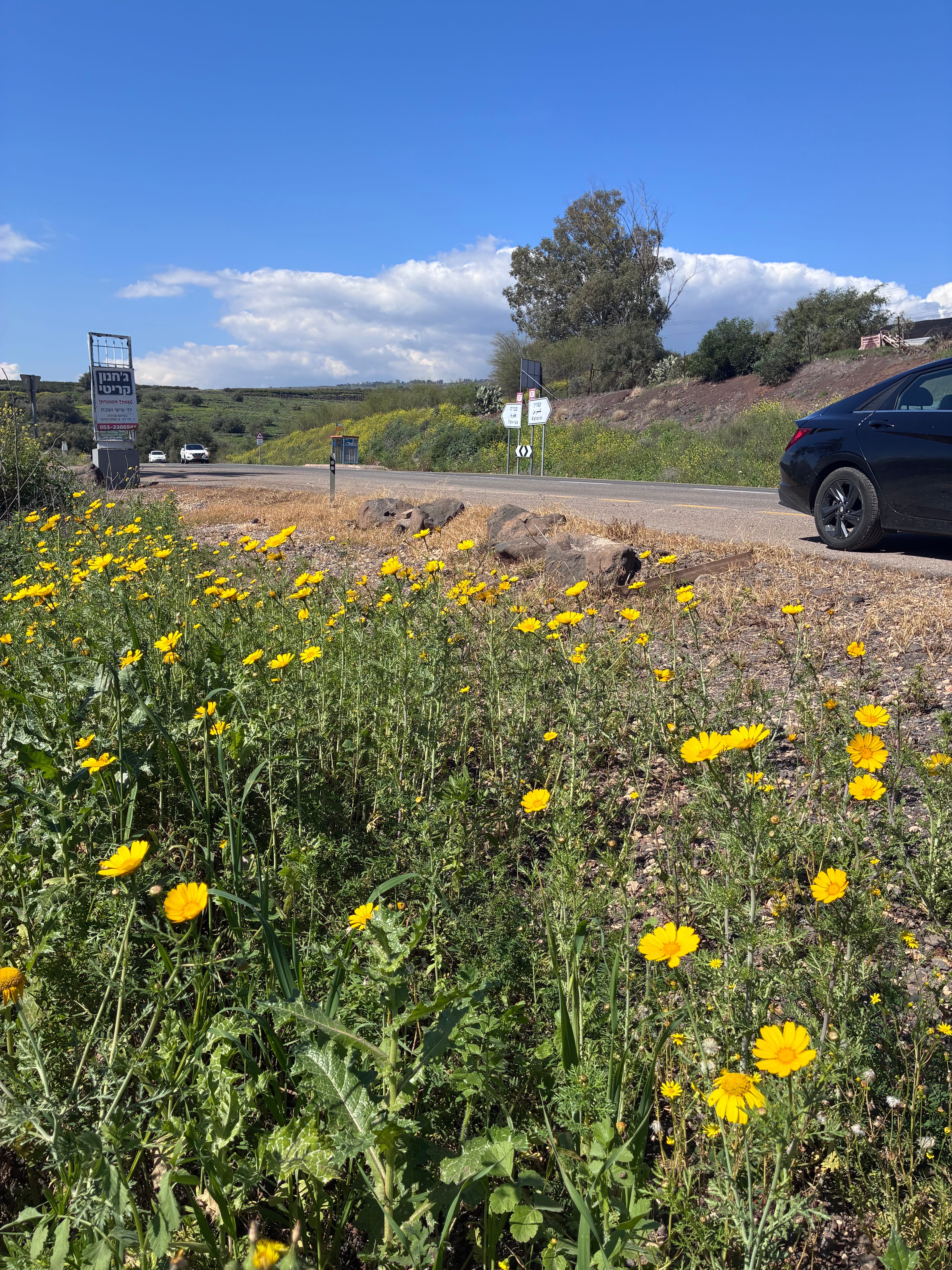 My husband and I were sitting in a flower filled ditch by the side of the road, watching the Iron Dome explode missiles overhead.